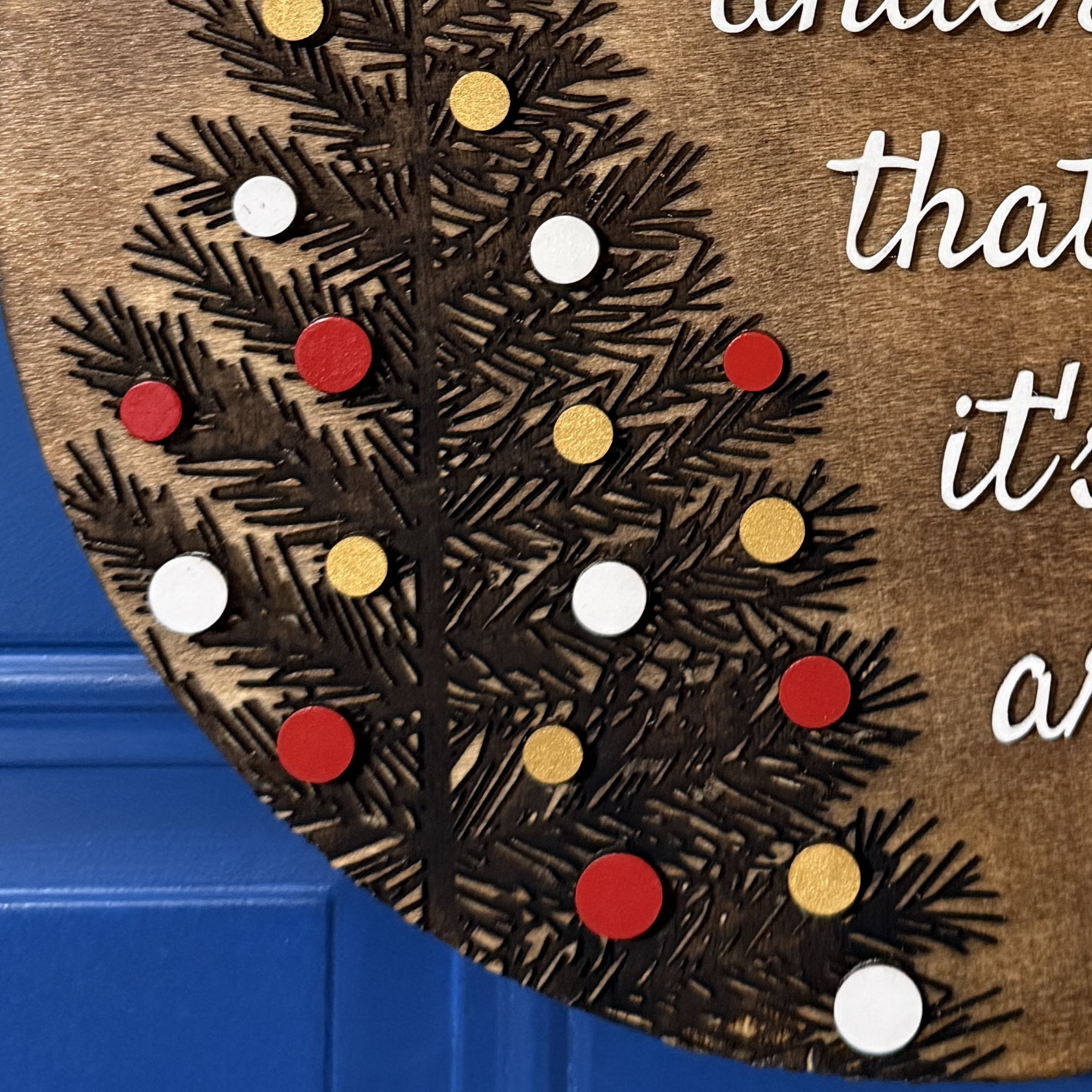 Welcome guests with warmth and cheer using this bold red-and-wood Merry Christmas door hanger. Featuring a stylized Christmas tree outline, layered lettering, festive greenery, and a plaid bow, it brings cozy cabin charm to your holiday décor.