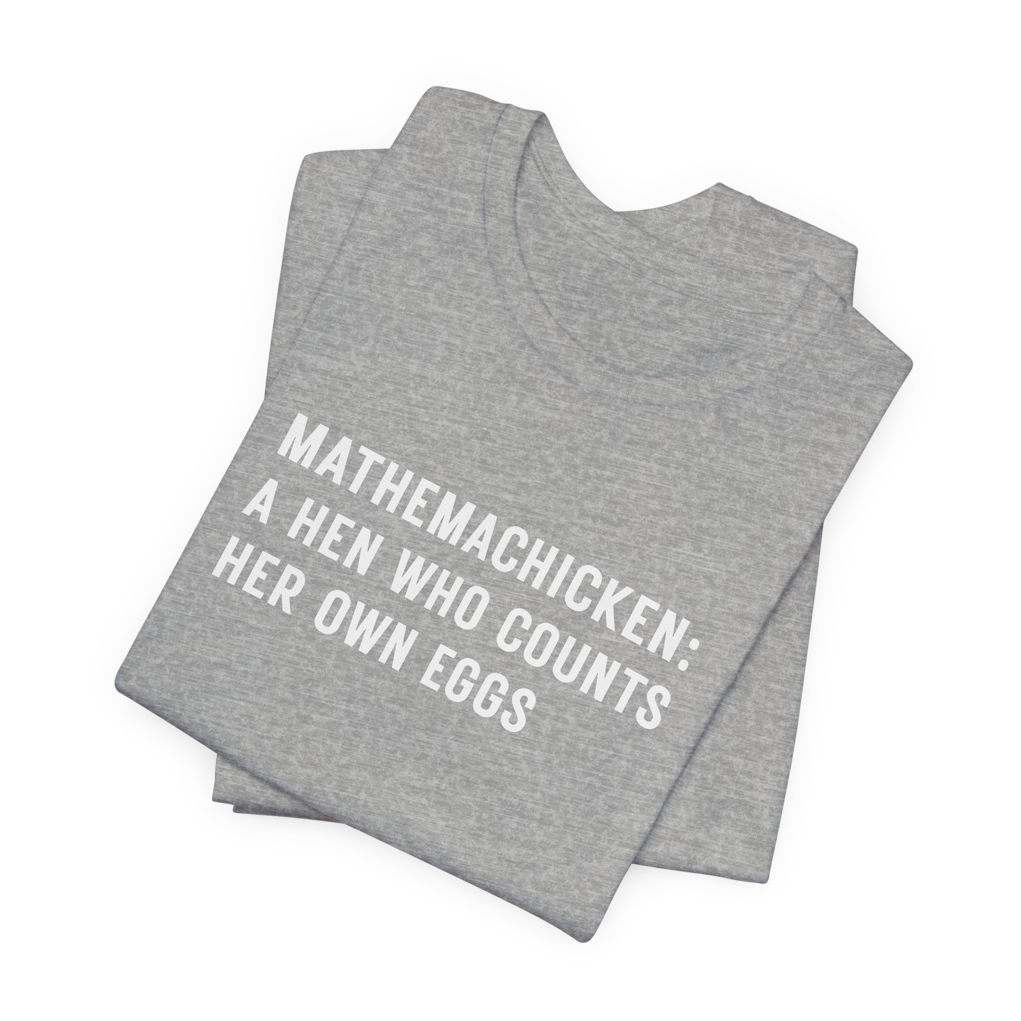 Mathemachicken is defined as a hen who counts her own eggs—a quiet math pun presented in a clean, definition-style design. Thoughtful, understated, and a little clever, this shirt is perfect for math lovers, word nerds, and anyone who appreciates humor that doesn’t shout.